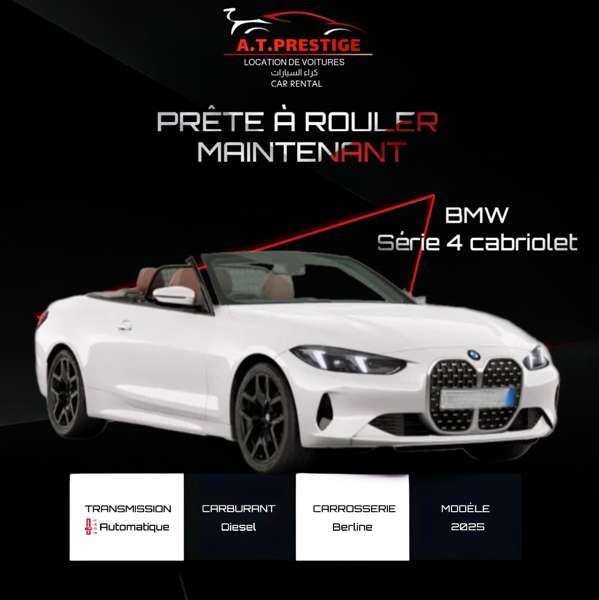 L’élégance prend l’air . Ce cabriolet 4 places incarne la quintessence du luxe automobile, alliant un design irrésistible à un confort absolu. C’est le compagnon idéal pour vos déplacements prestige.