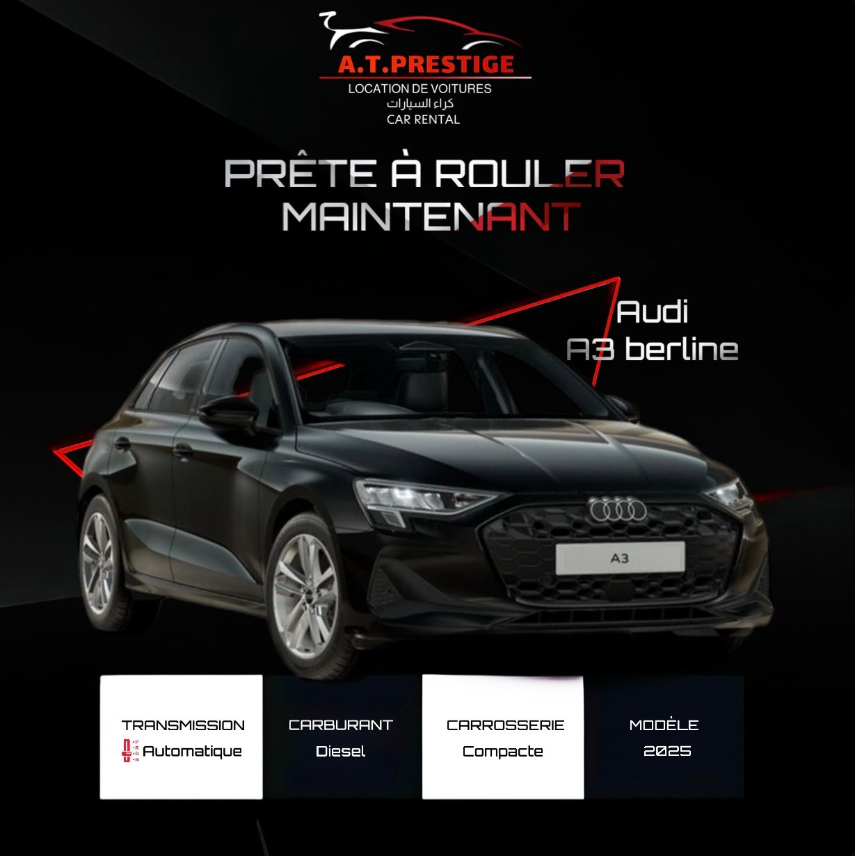 L’entrée dans l’univers du premium. L’Audi A3 Berline 2025 incarne l’élégance sobre et la technologie de pointe. Une expérience de conduite prestigieuse à portée de main.